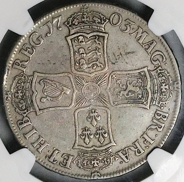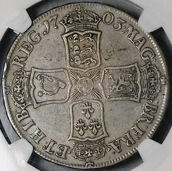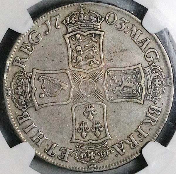 - Very Fine Queen Anne England Great Britain sterling silver 1/2 crown coin.