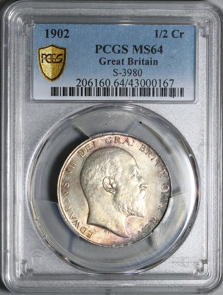 1902 PCGS MS 64 Edward VII 1/2 Crown Great Britain Sterling Silver Coin (25053103C)