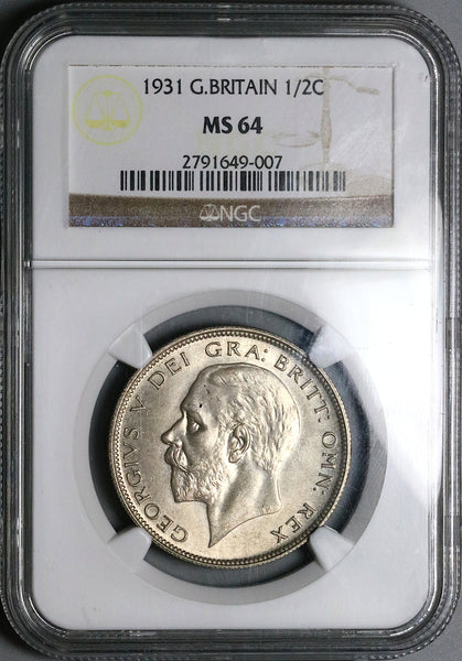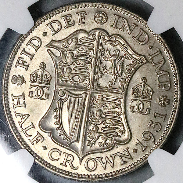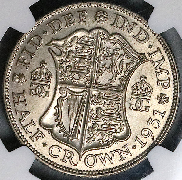 1931 NGC MS 64 1/2 Crown George V Great Britain Scarce Silver Coin (25091004C)