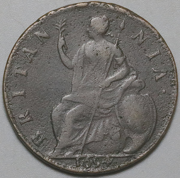 1694 William Mary 1/2 Penny VF Great Britain Colonial Coin (25112202R)