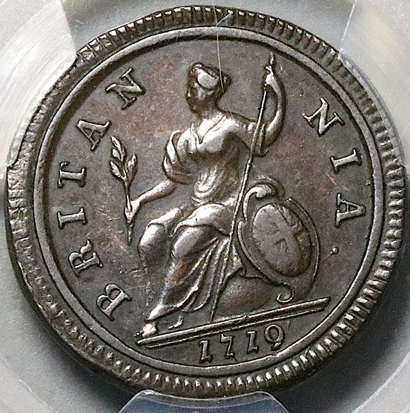1719 PCGS AU 53 1/2 Penny George I Copper Great Britain Coin S-3660 POP 1/0 (25092402C)