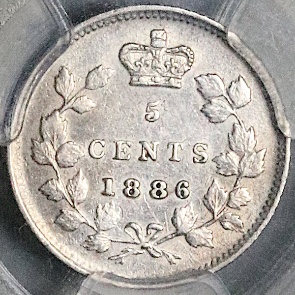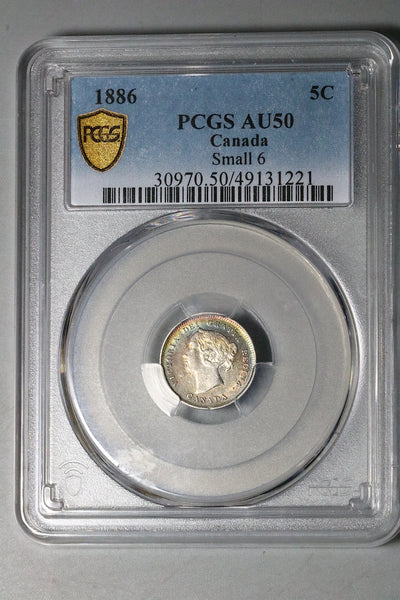 1886 PCGS AU 50 Canada Victoria 5 Cents Small 6 Sterling Silver Coin (25120202C)
