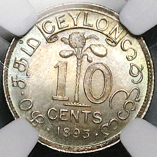 1893 NGC MS 64 Ceylon Victoria 10 Cents Silver Britain Colonial Coin (22080702C)