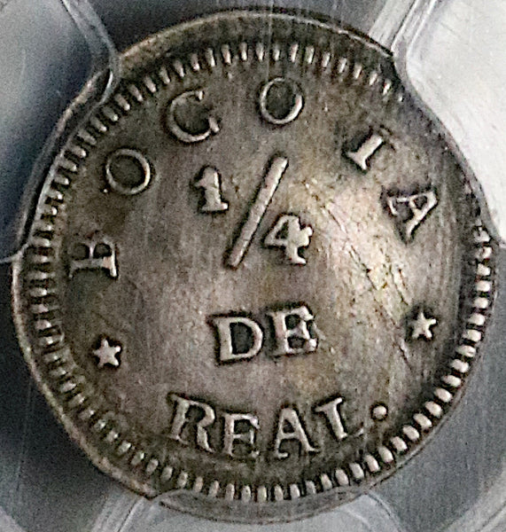 1844 PCGS XF 45 Colombia 1/4 Real Nueva Granada Bogota Mint Silver Coin POP 1/0 (25100201C)