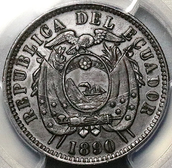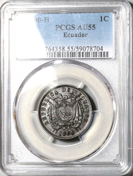 1890-H PCGS AU 55 Ecuador 1 Centavo Heaton Mint Copper Coin POP 1/1 (25062402D)