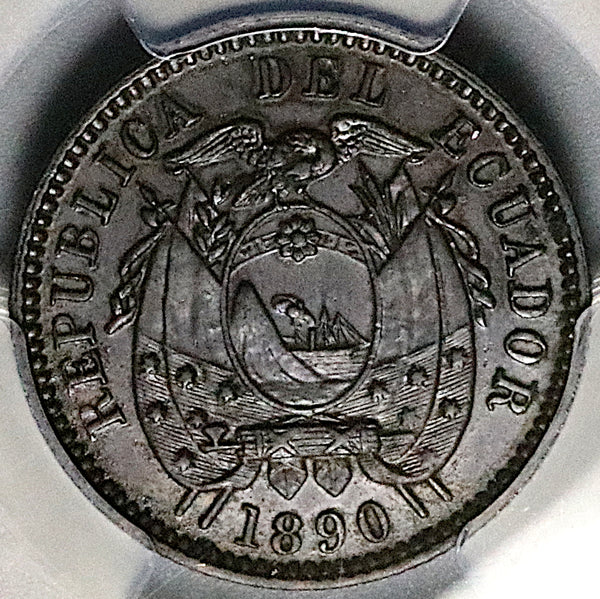 1890-H PCGS AU 58 Ecuador 1/2 Centavo Heaton Mint Copper Coin POP 2/1 (25062401D)