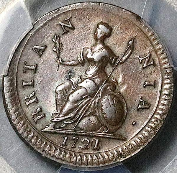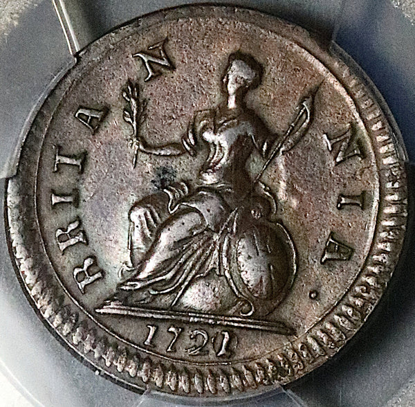 1721/0 PCGS XF 45 George I Farthing Great Britain Rare Overdate Coin POP 1/0 (25100902C)