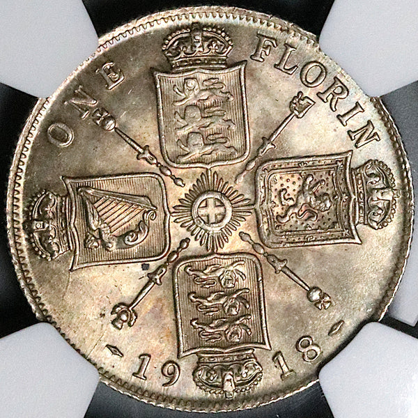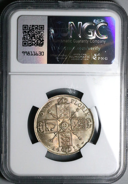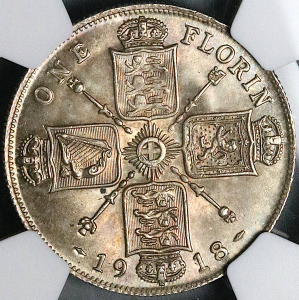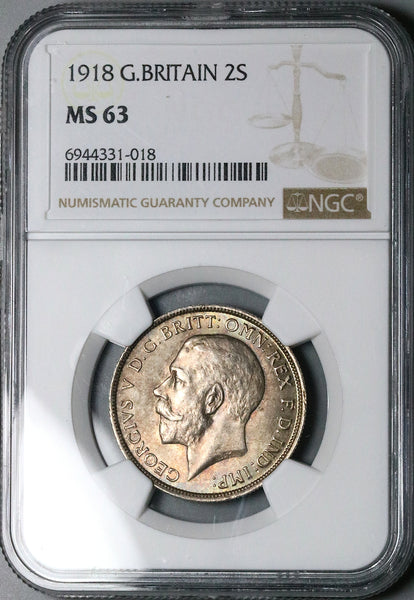 1918 NGC MS 63 Great Britain Florin 2 Shillings George V Silver Coin (24060903C)