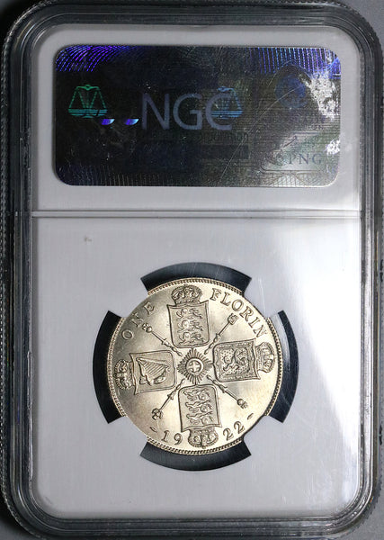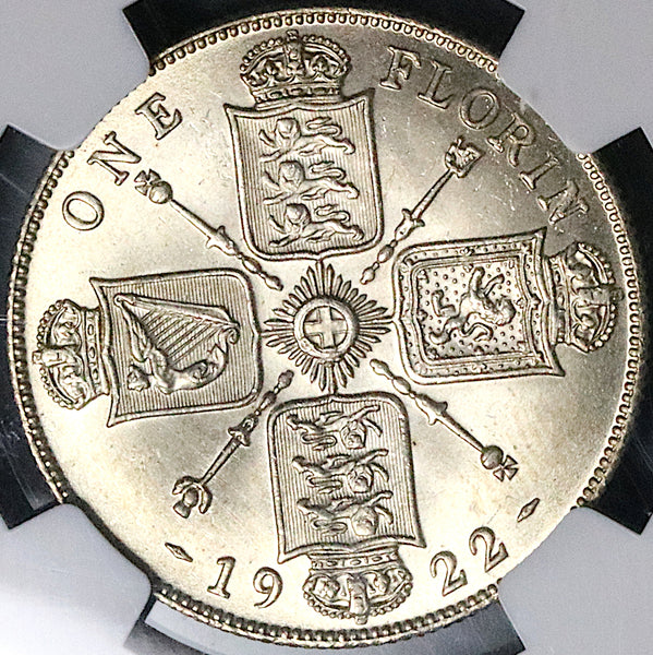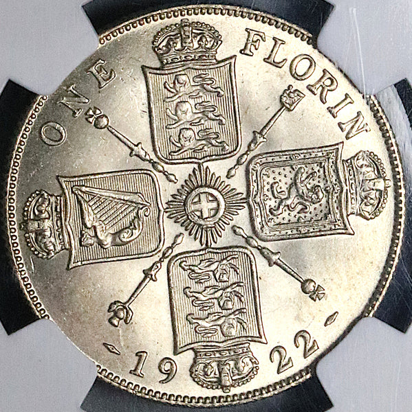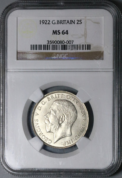 1922 NGC MS 64 Florin George V Great Britain 2 Shillings Silver Coin (23121703D)