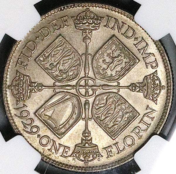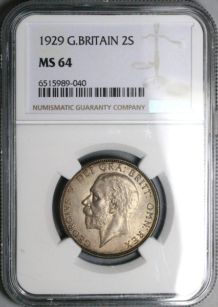 1929 NGC MS 64 Florin George V Great Britain 2 Shillings Silver Coin (23052903C)