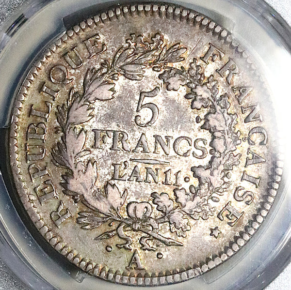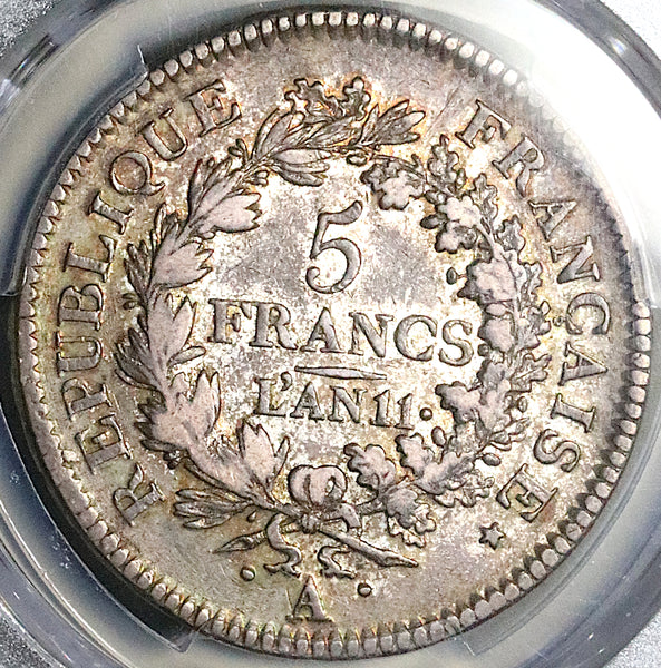 1802-A PCGS VF 30 France An 11 5 Francs No Star Consulat Hercules Silver Coin (25100701D)