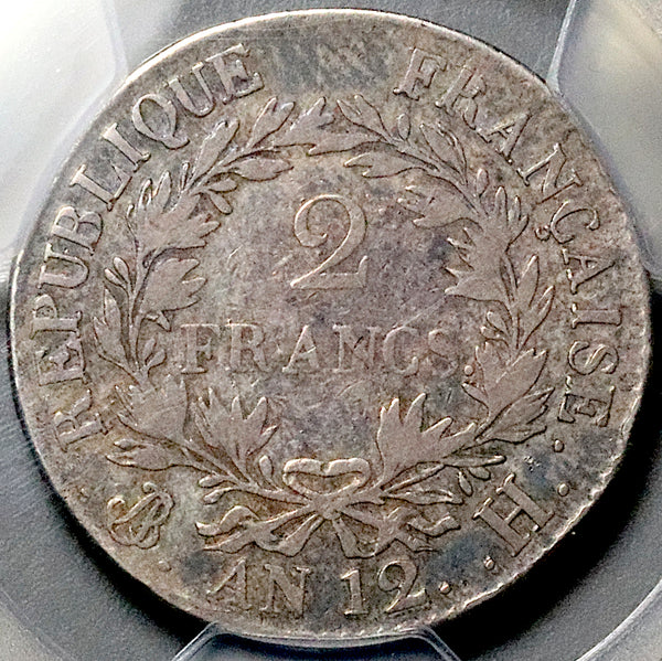 1803-H NGC F 15 France 2 Francs Napoleon I Rare An 12 La Rochelle Mint 12k Silver Coin (26031201C)