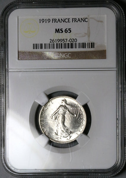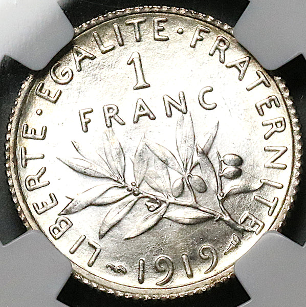 1919 NGC MS 65 France 1 Franc Sower Silver Gem Mint State Paris Coin (25111403C)
