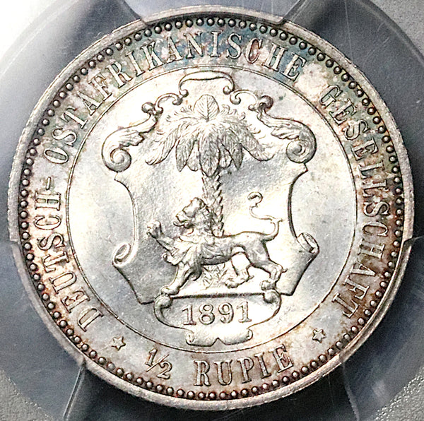 1891 PCGS MS 65 German East Africa 1/2 Rupie GEM Mint State Silver 68k Coin (25121601D)