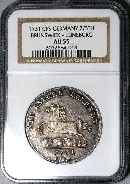 1731 NGC AU 55 Brunswick Hannover 2/3 Thaler George II Silver Coin POP 1/0 (24111701C)