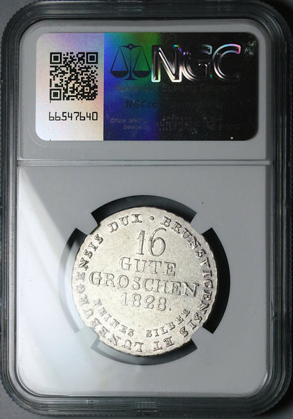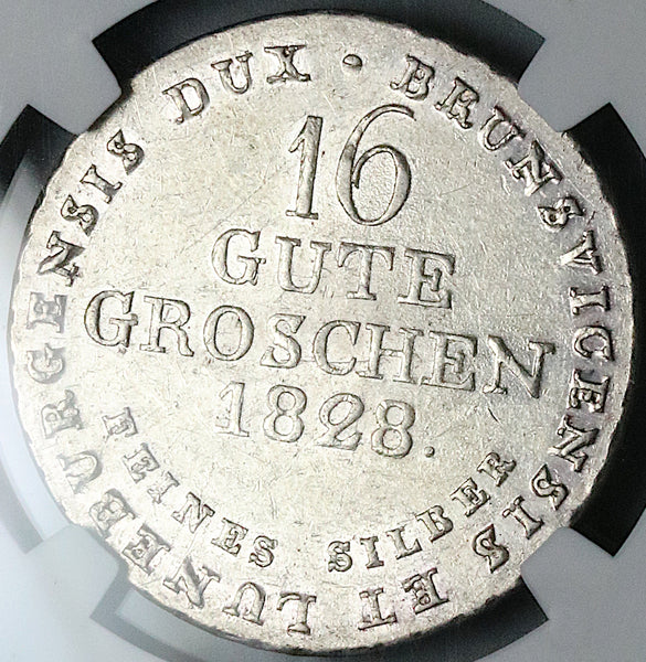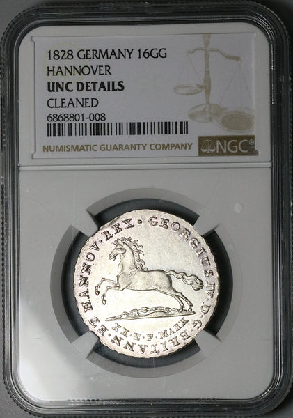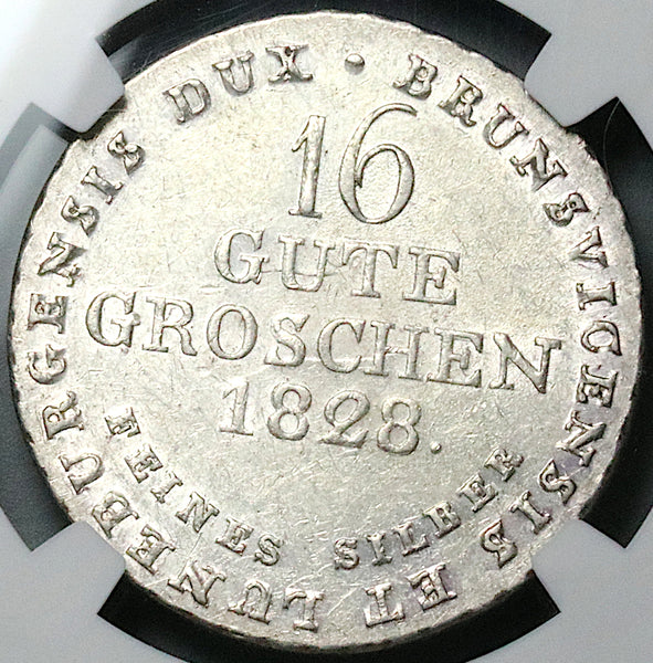 1828 NGC UNC Hannover 16 Groschen George IV German Britain Horse Silver Coin (25052001C)