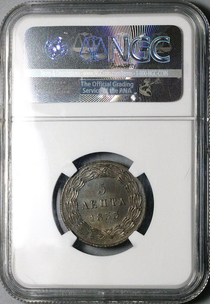 1833 NGC MS 64 Greece 5 Lepta King Otto Copper Mint State Coin (24031301D)