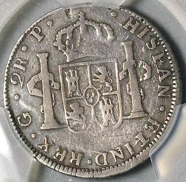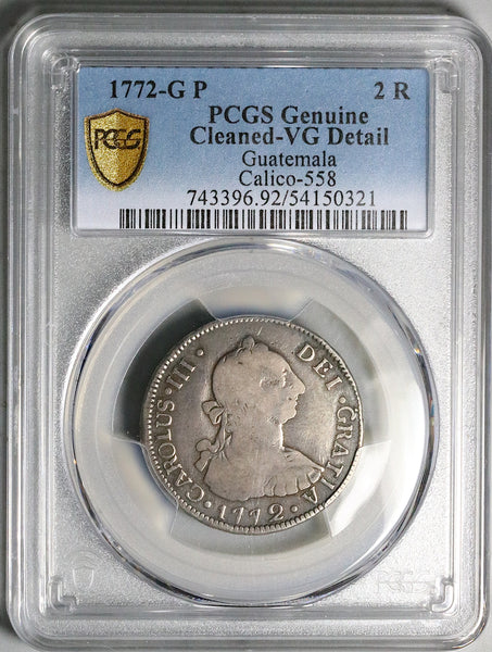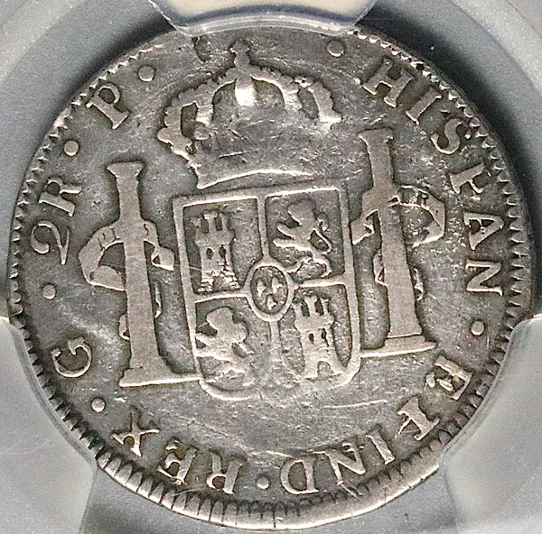 - Very Good Guatemala silver 2 reales coin.