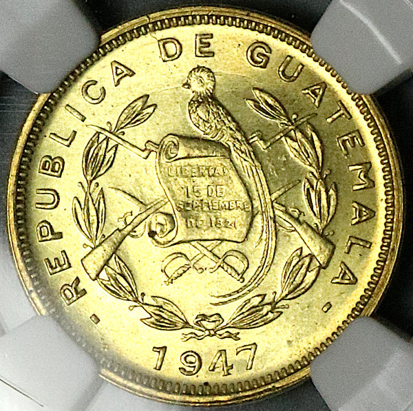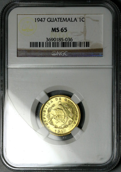 1947 NGC MS 65 Guatemala 1 Centavo de Quetzal Gem Coin POP 5/0 (25112302C)