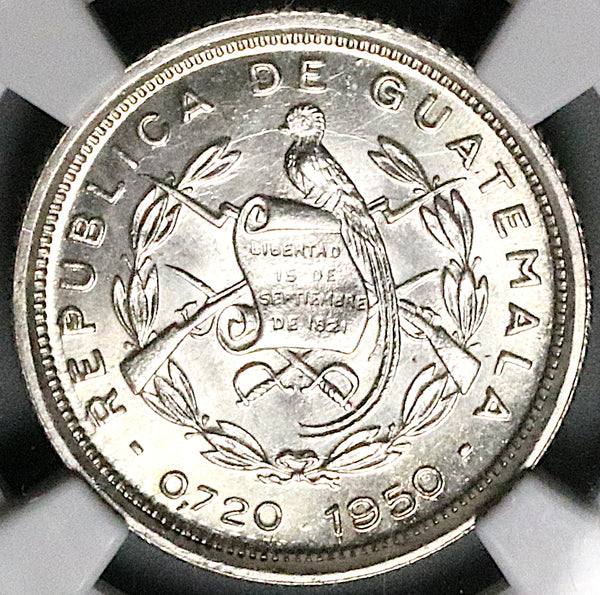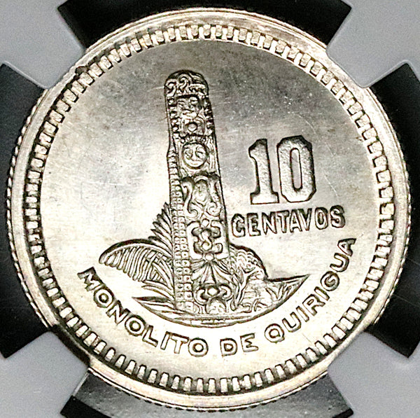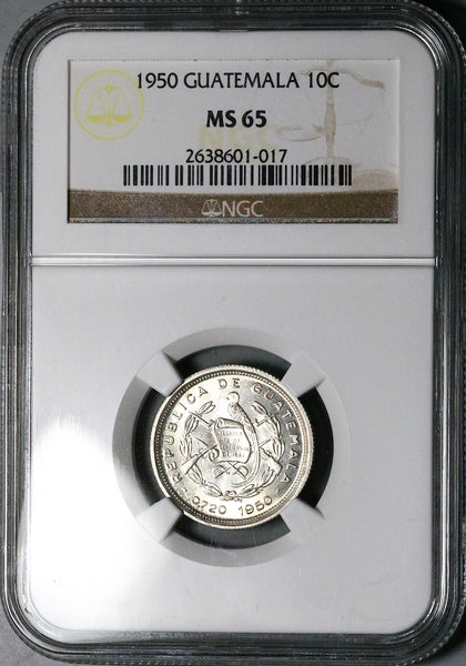 1950 NGC MS 65 Guatemala 10 Centavos Quirigua Monolith Gem Silver Coin (25112205C)