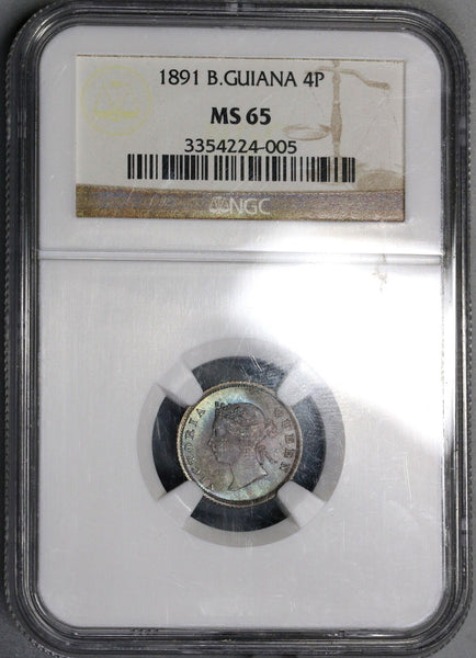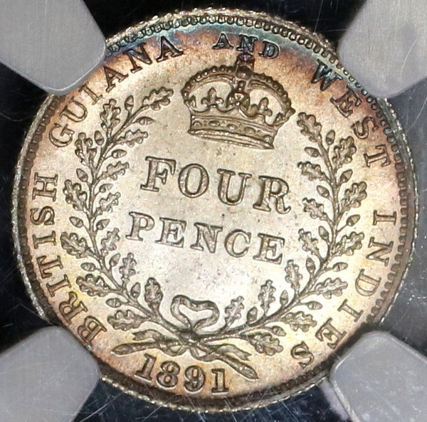 1891 NGC MS 65 British Guiana Silver 4 Pence Britain Empire Coin (17102401CZ)