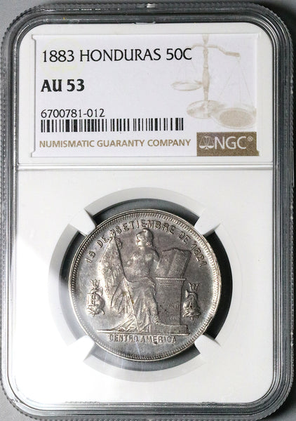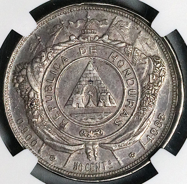 - Almost Uncirculated Honduras silver 50 centavos coin.