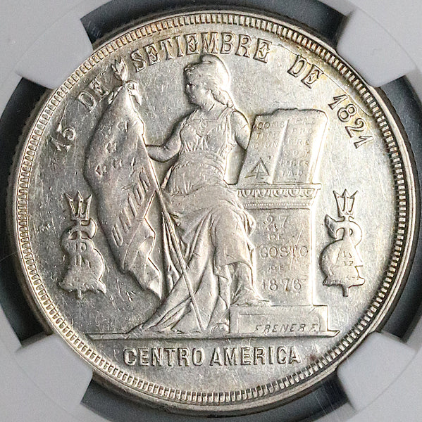 1888/7 NGC AU 55 Honduras 1 Peso Standing Liberty Overdate Silver Coin (24010901C)