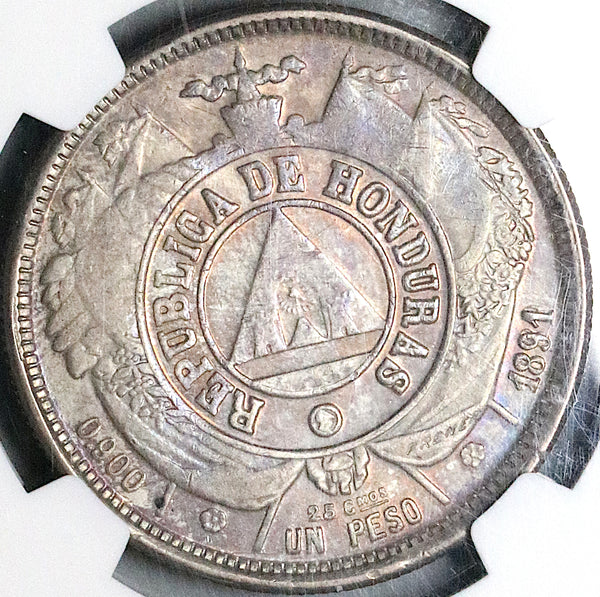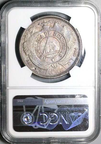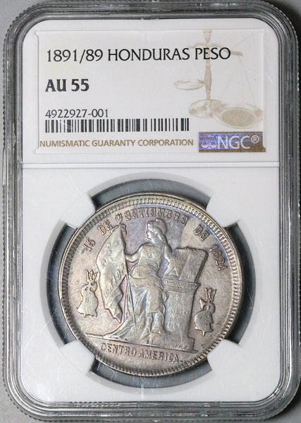 1891/89 NGC AU 55 Honduras Peso Overdate Standing Liberty Silver Coin (24070202C)