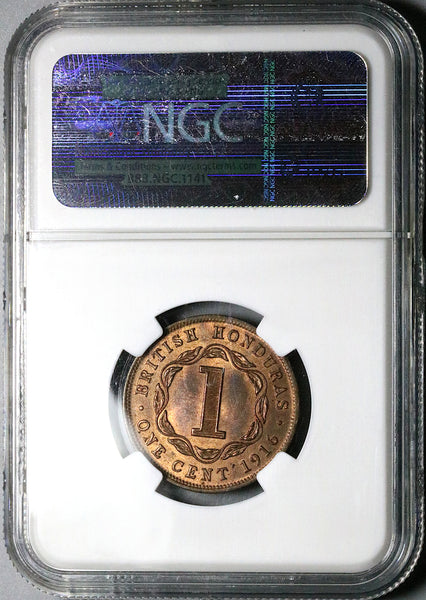 1916-H NGC MS 66 British Honduras 1 Cent George V Britain Coin POP 1/0 (25031301C)