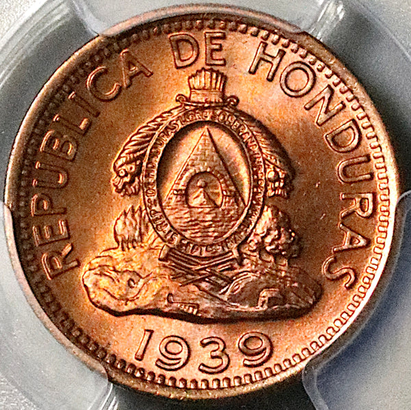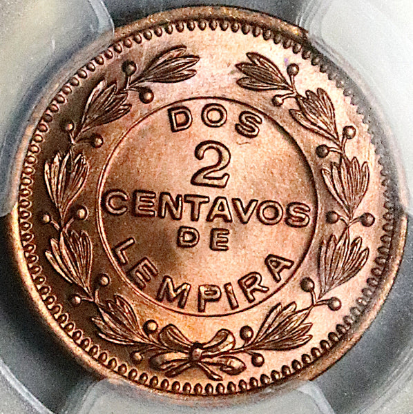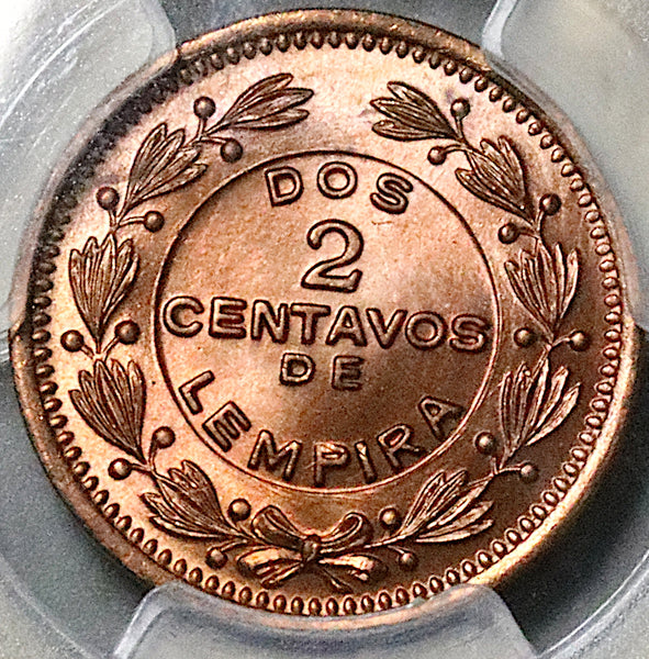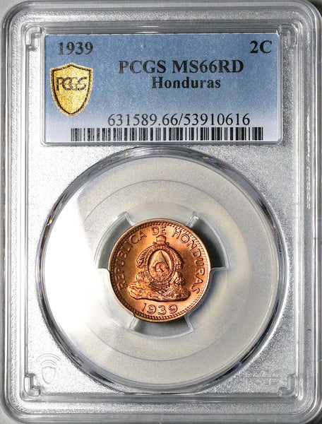 1939 PCGS MS 66 RD Honduras 2 Centavos de Lempira Gem RED Coin (26010204C)