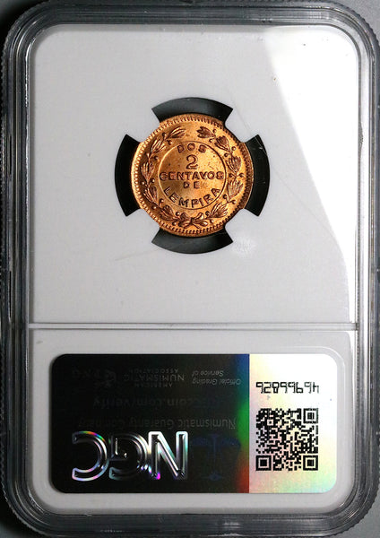 1956 NGC MS 64 RD Honduras 2 Centavos de Lempira Red Coin (24072103C)