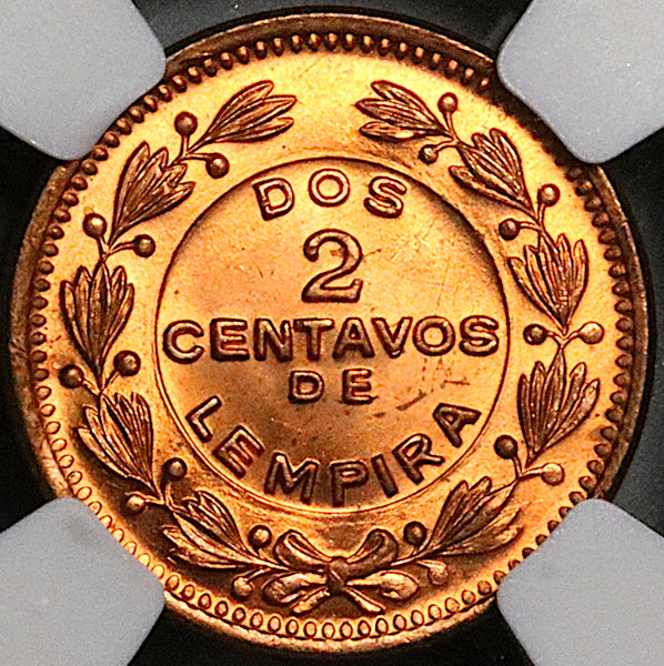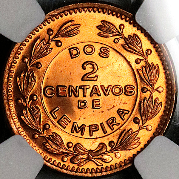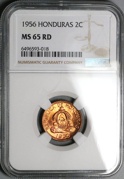 1956 NGC MS 65 RD Honduras 2 Centavos de Lempira Full Red Coin (24010601C)
