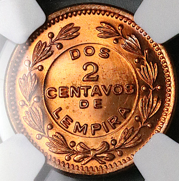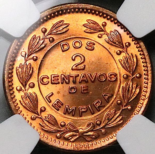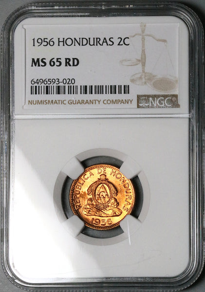 1956 NGC MS 65 RD Honduras 2 Centavos de Lempira Full Red Coin (25041802C)