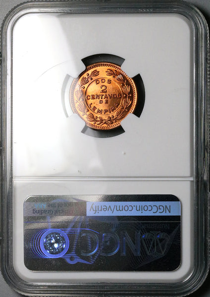Gem Mint State Uncirculated Honduras 2 centavos coin.