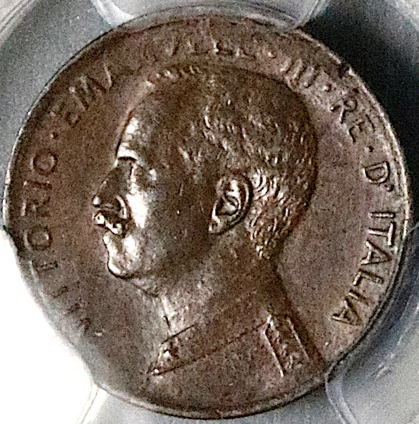 Rare key date type minted for King Vittorio Emanuele III at the Rome Mint (mint mark R).