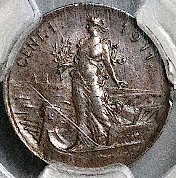 1911 PCGS MS 63 Italy 1 Centesimo Woman Ship Rare Key Coin POP 2/0 (25100701C)