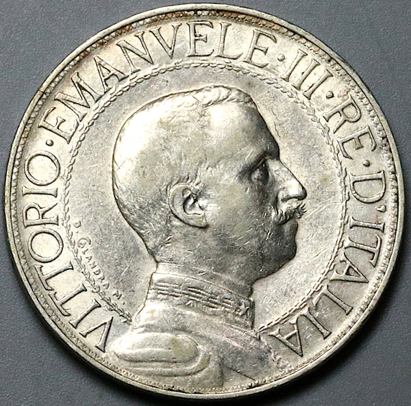 1912 Italy 2 Lire VF Horses Chariot Quadriga Silver Coin (24053001R)