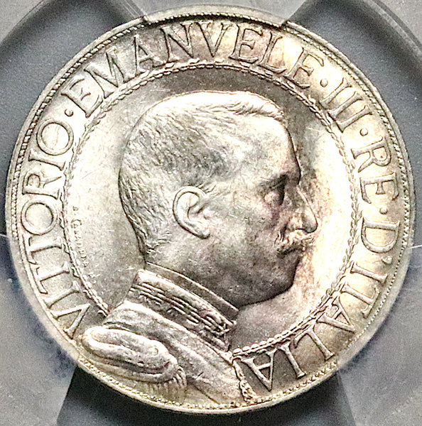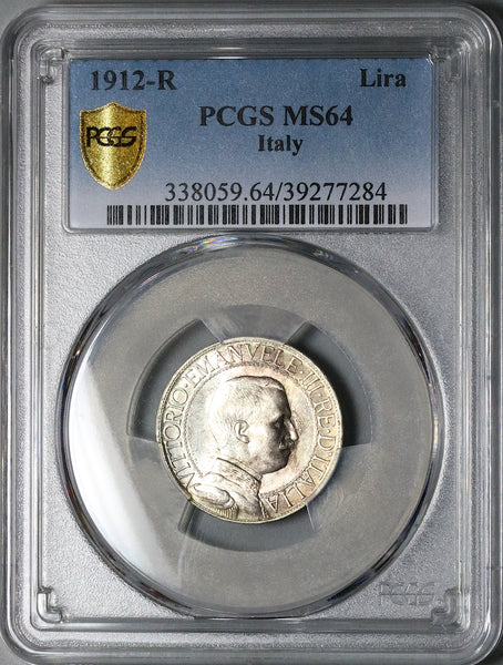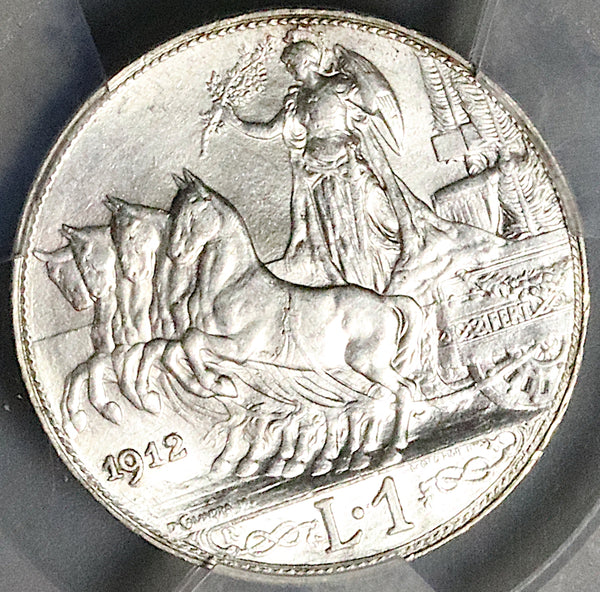1912 PCGS MS 64 Italy 1 Lira Horses & Chariot Silver Mint State Coin (24031002C)