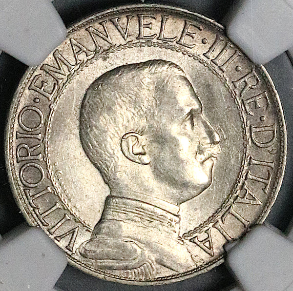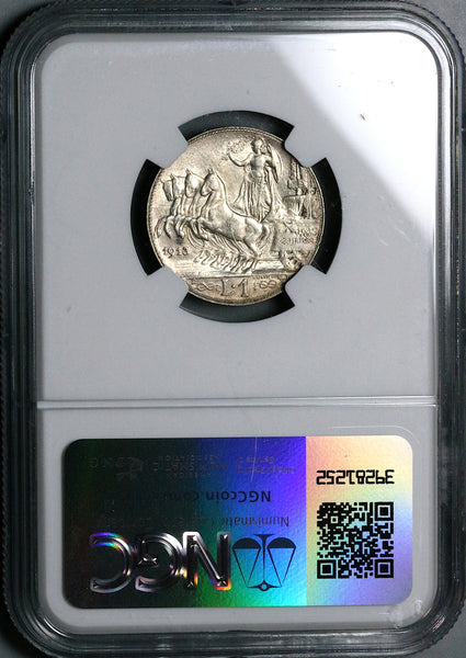 1914 NGC MS 63+ Italy 2 Lire Horses Chariot Silver Mint State Coin (22062701C)