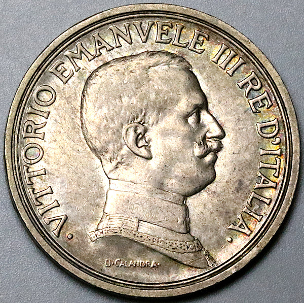 1916 Italy 2 Lire UNC Horses Chariot Quadriga Silver Coin (24060103R)