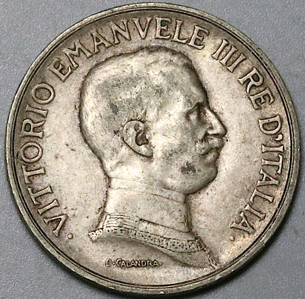 1917 Italy 1 Lira XF Horses Chariot Quadriga Rome Mint Silver Coin (24052807R)