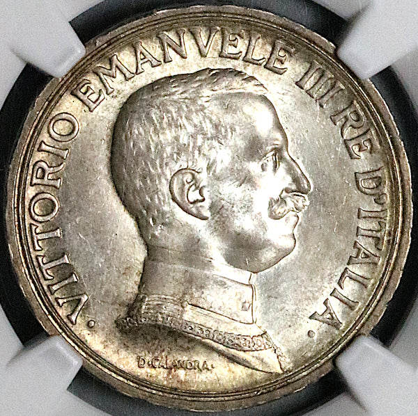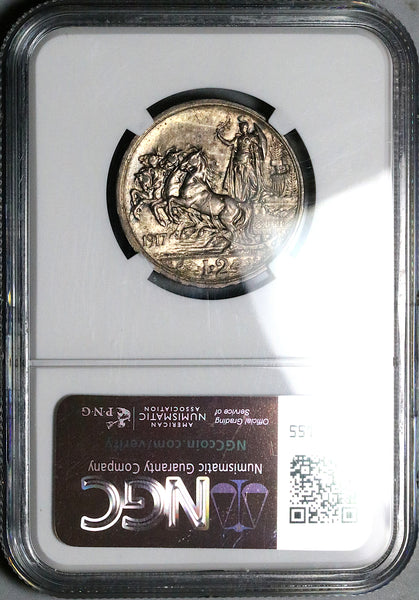 1917 NGC MS 63 Italy 2 Lire Horses Chariot Mint State Key Silver Coin (25120601C