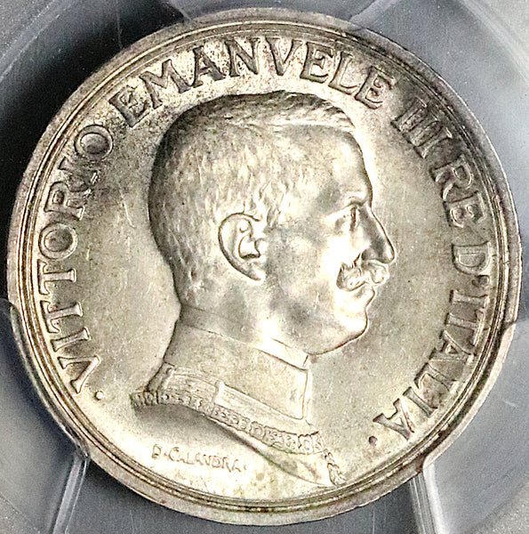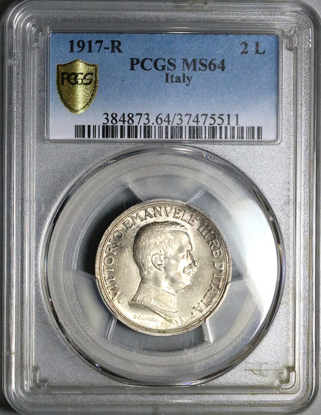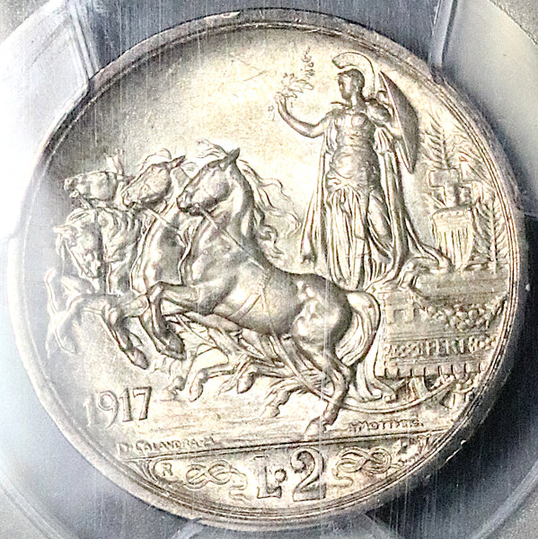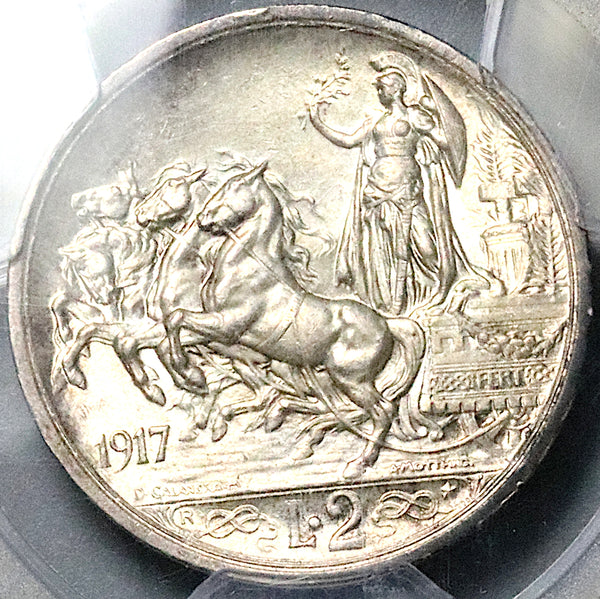 1917 PCGS MS 64 Italy 2 Lire Horses Chariot Gem Mint State Key Silver Coin (25120102C)