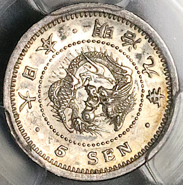 1876 PCGS MS 63 Japan 5 Sen M9 Type 1 Dragon Silver Coin JNDA 01-35 (26012503C)