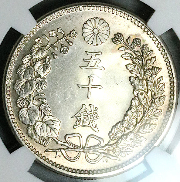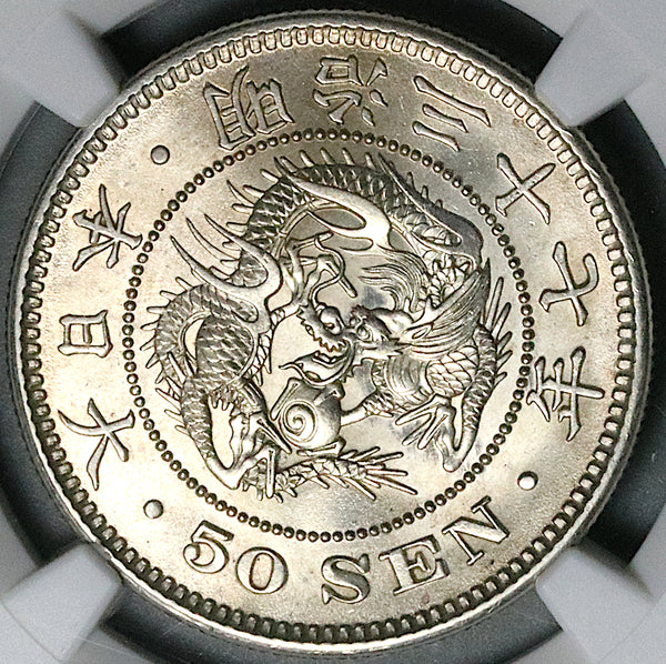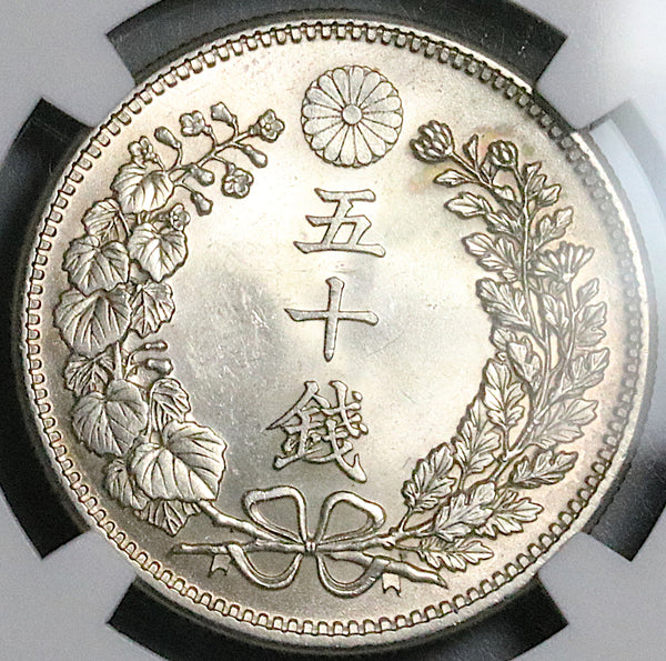 1904 NGC MS 63 Japan 50 Sen Dragon M37 Mint State Silver Coin (25112201C)