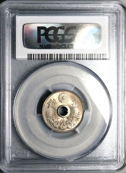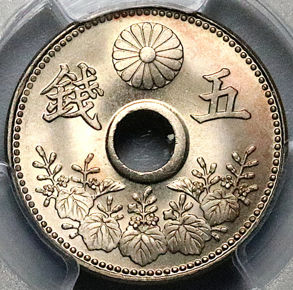 Gem Mint State Uncirculated Japan 5 sen coin.
