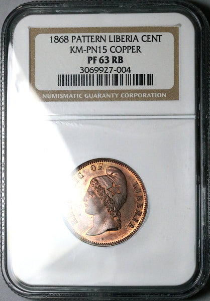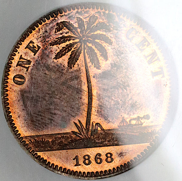 - Proof Uncirculated Liberia large copper 1 cent coin.