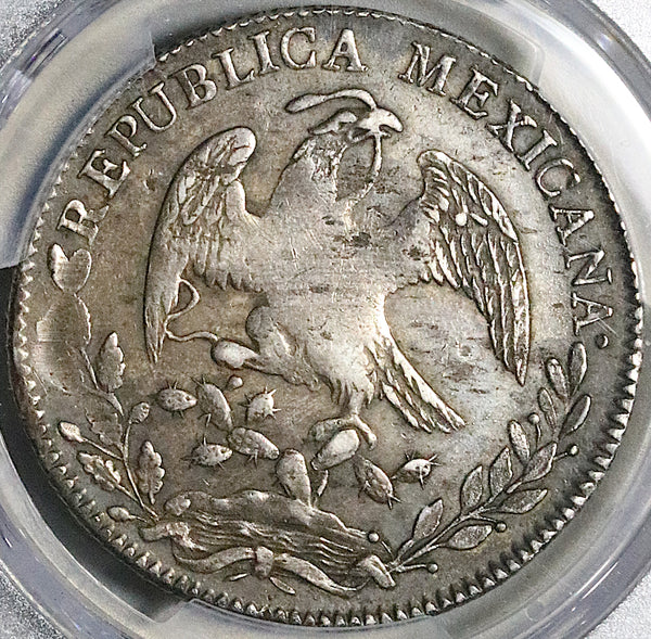 - Extremely Fine Mexico silver 8 reales coin.