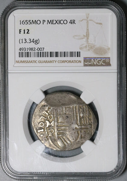 - Full four digit date (1655), mint mark (MO) and assayer letter (P), extremely rare for a cob of this era.