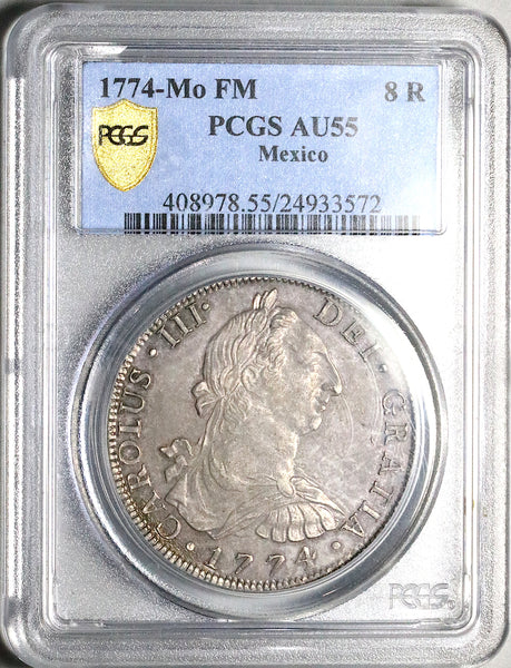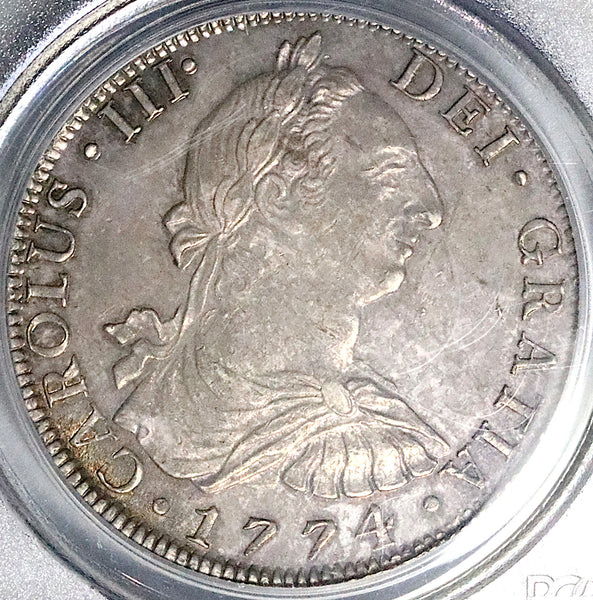 - Struck 1774 for King Charles III at the Mexico City Mint (mint mark Mo), assayer FM.